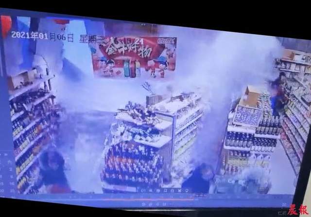 6日晚在网上热传的视频显示,事发时间为1月6日16时19分,几名顾客(多为老年人)正在货架旁挑选商品,突然,货架倚靠的墙体一侧发生倒塌,现场随即扬起大片灰尘。因人员伤亡情况不明,当晚,不少人在微信群得知这一消息后,纷纷祈祷在场的人员平安。