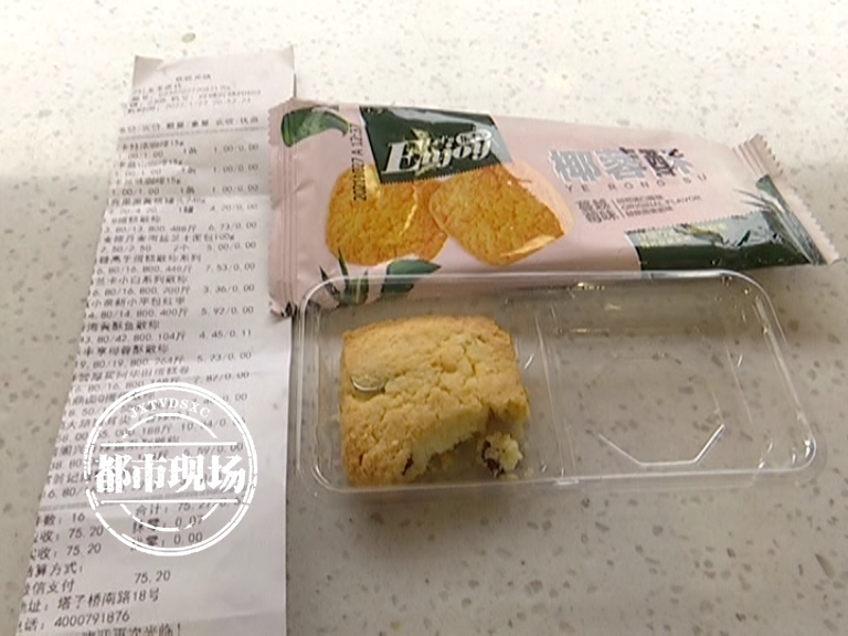 那袋散装乐丰享椰蓉酥的价格是5.23元,一赔十也就是52块3,消费者不接受这个方案。经过协调,这名毛姓负责人表示,他们愿意赔偿熊先生1000元,但前提是,投诉内容不能在《都市现场》节目中播出。熊先生并不同意,表示将在周一通过市场监管部门继续投诉。