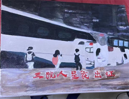 在采样现场,队员陶美斯收到一份特殊的画,送信的是一位孩子,画中描绘的是采样队员们出征的那个夜晚。当时,正是核酸采样最紧张的时刻,采样队员并没有与之进一步交流。但这幅画却让我们看到了“守望相助”的温暖传递 ,更传递了医患携手共同抗疫的决心。