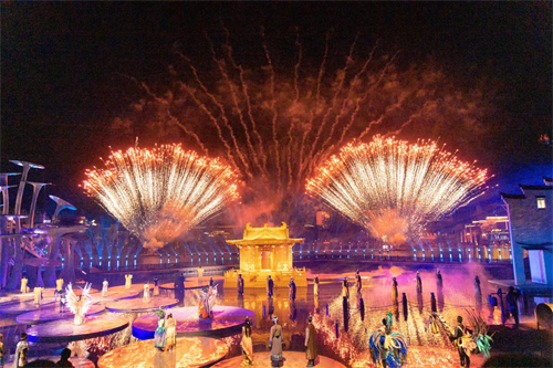 璀璨烟花过大年 “爆竹声中一岁除,春风送暖入屠苏。”辞旧迎新,用烟花点缀新年之始,是我国传统习俗。夜空为幕,河水为影,焰火为缀,游客将欣赏到流光溢彩、美不胜收的烟花秀表演。