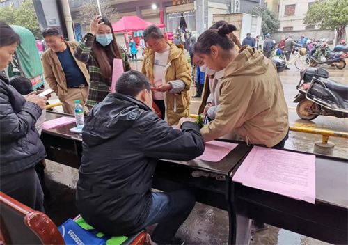 新春佳节即将来临,就业招聘已经开始。1月13日,农历腊月二十二,正值吴城乡村民春节前赶集置办年货,吴城乡便民服务中心、妇联、民政所、劳保所等多部门联合组织在吴城集镇农贸市场隆重举办“现场招聘进乡镇 助力就业暖人心”—2023年“春风行动”暨就业援助月专场招聘会。本次招聘会旨在为高校毕业生、脱贫人口、返乡务工人员、留守妇女、就业困难群体等提供就业服务,搭建双向人力资源供需平台,参加现场招聘会有江西金虎保险设备集团有限公司、江西康怡食品有限公司、江西司太立制药有限公司、宜春广来香江学校等多家企业单位,提供就业岗位100个,其中涵盖岗位包括工程师、技术员、文员、机修工、操作工、保洁员、生活老师等,初步达成就业意向15人,发放招聘宣传材料200余份,现场就业咨询答疑100余次。