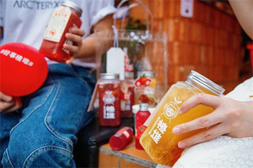 因此,在营销模式上,联名、合作、快闪等方式,都是楂堆开拓的新模式。例如楂堆与长沙本土火锅头部品牌大斌家合作,推出了多款联名产品,受到一致好评。