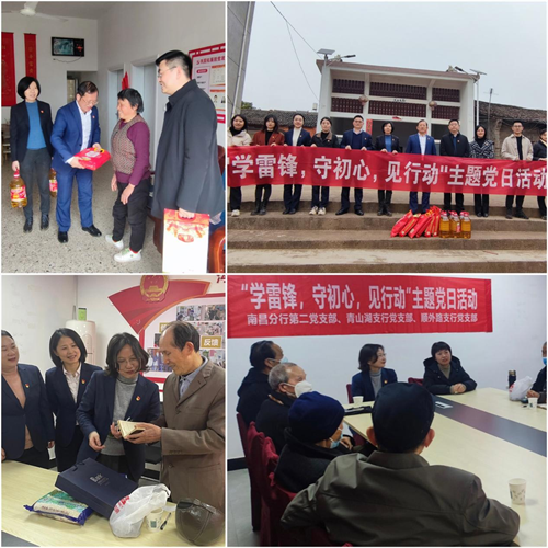 党委班子带头,基层党员积极行动。光大银行南昌分行党委班子成员积极参与所在党支部“学雷锋”主题党日活动。2月27日,分行第二党支部、青山湖支行党支部、顺外路支行党支部与南昌市青山湖区上海路街道开展联合党建活动,党员集体参观了上海路红哨所红色教育基地、上海路退役军人服务站,为到场的退役老军人送上温暖关爱和慰问品,向他们致以崇高敬意。3月3日,分行第一党支部和交易银行部党支部联合党建活动,分行班子成员与支部党员一同前往新建区绿源农庄开展义务植树活动,走访慰问金桥乡脱贫群众,弘扬奉献精神,提升服务意识,传递社会正能量。