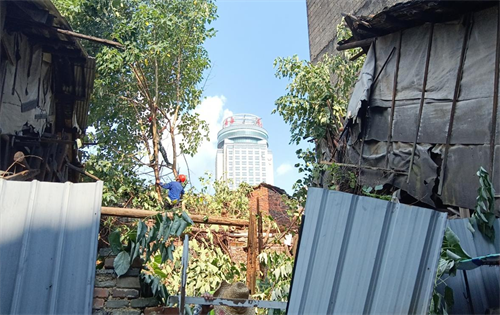 近日,接到云谷巷居民反映,家附近有棵危树,由于此危树树枝掉落居民屋墙上,该棵树位置较高,由于生长繁茂,树枝弯到地面,居民的墙面将会面临倒塌危险,存在安全隐患。