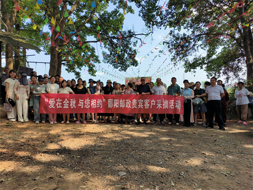 近日,鄱阳县邮政分公司分鄱南、鄱北两个片区分别开展了“爱在金秋 与您相约”葡萄采摘活动,让贵宾客户亲近自然,体验乡村风情,同时也加强了网点与客户的联系。