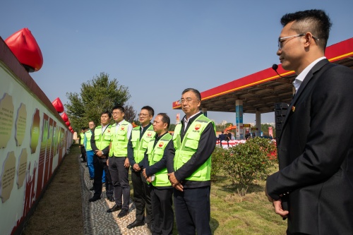 揭牌仪式后,嘉宾们跟随讲解员共同参观了井冈山文化主题加油站。据介绍,为大力弘扬井冈山精神和石油精神,赓续精神血脉,中国石油江西销售公司利用吉安青原加油站独特的地理位置,打造了一座以传承新时代井冈山精神为主题的文化加油站。该站通过打造党建文化长廊、红色文化长廊、石油精神文化长廊等,将井冈山革命斗争史、井冈山精神、石油精神等内容与红色雕塑、火炬灯、红色诗词等元素巧妙融合,驻足加油站,令人眼前一亮,精神振奋。便利店里还设置了“工会驿站”,具有休息、充电、饮水等便民服务功能,是司机和户外劳动者的温馨港湾。