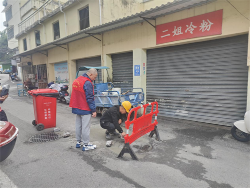 社区第一时间联系道路修复施工方,制定修复计划,并安排网格员和志愿者在现场进行疏导及协调工作,保证路面修缮作业能够顺利进行。道路修复既优化了居民的出行环境也优化了社区的营商环境。看着坑洼的道路变得平整了,周边的居民和商户都竖起了大拇指。