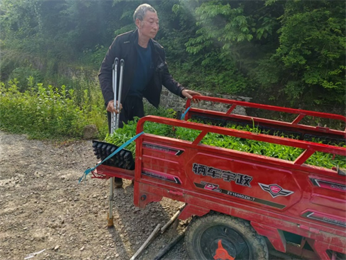 图:村民余祖学装运辣椒苗