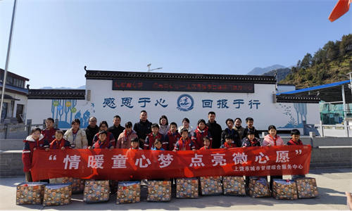 为切实关心关爱留守学生的学习与生活,1月13日,根据上饶市城管综合服务中心平安建设帮扶工作安排,上饶市城管中心党委委员、副主任詹莉率队一行来到婺源县沱川学校,为孩子们送上他们所期盼的笔盒、书包、篮球......这些礼品不仅仅是物质的馈赠,更是一份份沉甸甸的爱与关怀。活动现场詹莉向孩子们表达了新年的美好祝愿,同时鼓励孩子们珍惜大好的学习时光,努力学习、奋发向上、永攀高峰。