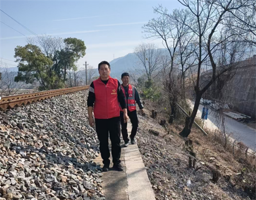 昌江区护路深知春运期间铁路运输安全的重要性,紧锣密鼓组织护路负责人和志愿者,对皖赣铁路、昌景黄高铁沿线辖区内展开全面巡查,巡查队员们重点检查涵洞、路基、铁路沿线防护网是否存在破损,语言报警器、标识标牌有无丢失或损坏,以及昌景黄高铁沿线两侧是否有轻质漂浮物和行人违规进入铁路保护区等安全隐患。