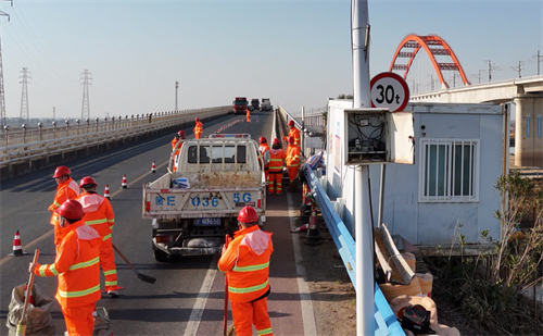 在演练现场,该中心应急小组反应迅速,分工明确,密切配合。工作人员迅速放置安全警示标志,并安排专员进行交通引导,确保过往车辆行车安全;养护工人则迅速开展除雪保通作业,使用除雪铲对模拟的积雪结冰路段进行清理,应急队伍还撒布工业盐提高道路的抗滑性能,保障行车安全。