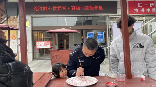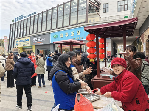 最具烟火气的当属"手作元宵"体验区。社区提前准备了十种特色馅料,党员志愿者与居民围坐揉面制馅,活动现场欢声笑语不断,洋溢着温馨、欢乐、祥和的气氛。当热气腾腾的元宵出锅时,环卫工人李大姐感动地说:"能在工作间隙吃到现包的元宵,心里特别温暖。"