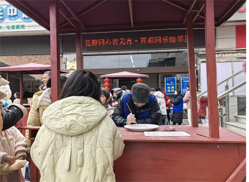 活动现场热闹非凡,居民们纷纷参与其中,共同感受传统佳节的魅力。其中,“写‘百福’迎祥瑞,非遗瓷板画制作”环节备受瞩目。居民们在专业老师的指导下,亲手书写百福字,体验传统非遗技艺,感受吉祥如意的节日气氛。这一活动不仅传承了中华优秀传统文化,还激发了居民们对传统文化的热爱与传承意识。