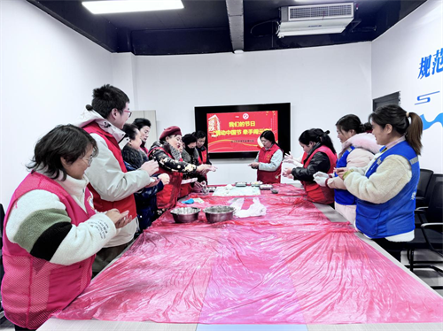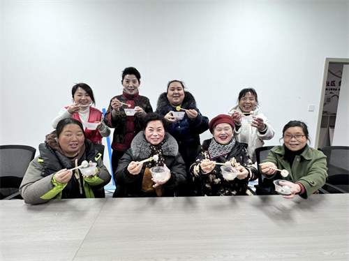 活动现场,糯米粉、馅料整齐摆放,居民们围坐一团,揉面、搓汤圆,手法娴熟。大家一边分享着制作汤圆的技巧,一边交流着生活趣事,不一会儿,一个个圆润饱满的汤圆就摆满了盘子。社区工作人员还邀请了环卫工人,将煮好的汤圆送到他们手中、让他们也能感受到节日的温暖。