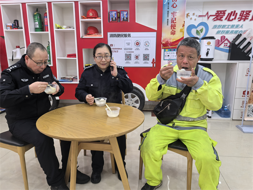 活动现场,设置了“庆元宵 共团圆”、“猜灯谜 享民俗”、“工会帮就业”技能培训、健康义诊、律行·景工益助等多项活动,珠山区太白园街道浙江路社区工会驿站职工志愿者们、玉禾田环卫、饿了么外卖、UU跑腿、顺丰快递等新就业形态劳动者们,有的忙活着煮汤圆、拿碗勺;有的将煮好的热气腾腾汤圆,端给新就业形态劳动者享用;有的参与猜灯谜活动,开心地领取奖品,共同感受中国传统文化内涵;有的将汤圆送到正在忙碌工作的民警、快递员手中;有的向新就业形态劳动者们普及法律知识、免费提供健康咨询,并聆听其诉求,帮助外卖骑手等新就业形态劳动者增强法律意识、健康风险意识,大家脸上洋溢着幸福的微笑,营造出浓厚的节日氛围。UU跑腿的吴师傅说:“工会驿站开展这样的活动,让我们卸下工作疲惫,增添了生活乐趣,我从中感受到了社会各界对我们新就业形态劳动者的关爱。”