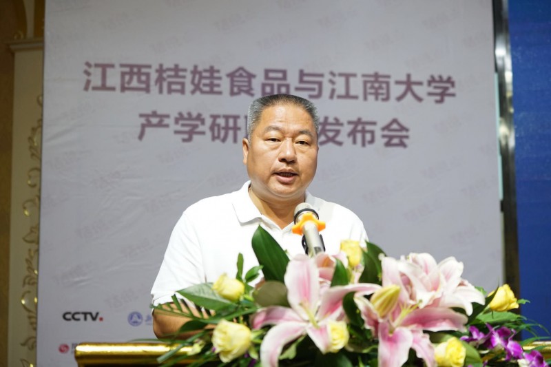 (江西桔娃董事长徐志华在发布会上致辞)