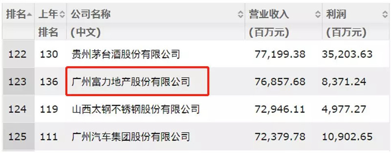 在今年5月美国《福布斯》杂志出炉的2019年福布斯全球上市公司2000强榜单中,富力集团也凭借2018年的业绩表现位列全球第761名,在上榜的中国房地产企业中位列第8名。