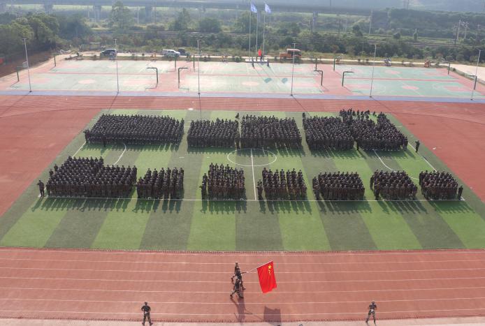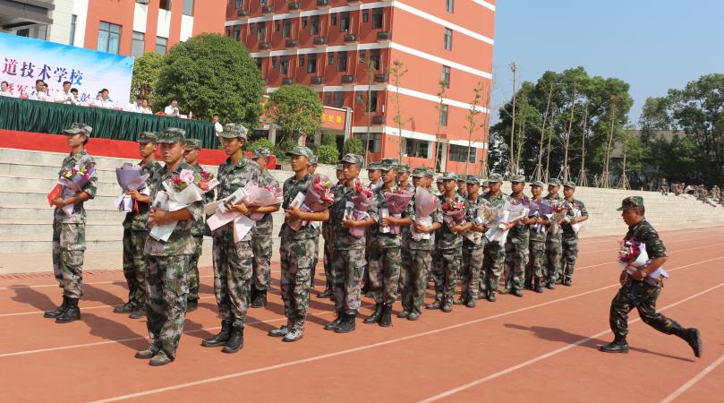 紧接着,各新生班学生代表向全体教官献花并欢送教官离场。同学们异口同声:教官,你们辛苦了!看着教官远去的身影,同学们热泪盈眶,十分不舍!