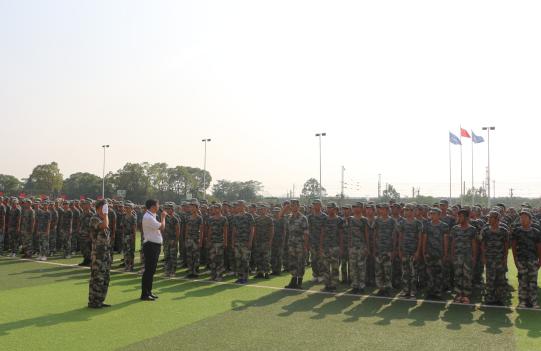 紧接着,肖校长为迎新致辞。在讲话中,肖校长表达了对新生的热烈欢迎和衷心祝贺以及对全体教官、全体教职工的感谢。他在讲话中向全体新生提出了三点建议:一是应学会立德立志,二是应学会勤学敏行,三是应学会独立团结。肖校长的讲话铿锵有力、催人奋进。