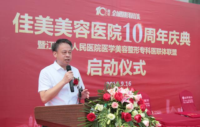 消费日报网讯 9月16日上午10点,江西省人民医院医学美容整形专科医联体联盟启动仪式暨“佳美10周年庆典启动仪式”在南昌佳美美容医院隆重举行。出席庆典仪式的人员有:江西省人民医院整形外科主任李小林、佳美美容医院执行董事陈国兴、佳美美容医院院长高晓坤和佳美专家团代表以及南昌市医联体、10大合作品牌厂商等。