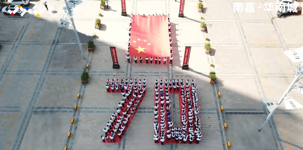 70年波澜壮阔,书写了中国人民砥砺前行的奋斗诗史。一面巨大的五星红旗在36位员工组成的护旗手队伍中飘扬着进入广场。随即200多位员工有序组成“70周年”字型,南昌华南城用这一特别的方式送上对祖国生日深深的祝福。