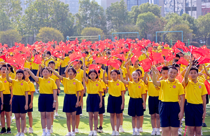 消费日报网讯(魏荣) 秋风送爽,彩旗飘飘,神州大地,欢歌如潮。为弘扬爱国主义精神,营造礼赞新中国、奋斗新时代的浓厚氛围,9月29日,“祖国,我爱你!”千人齐唱国歌庆祝新中国成立70周年活动在南昌二中举行,2019名可爱的学生们分成12个方阵在操场上拼出“我爱中国”“不忘初心、牢记使命”的字样,高唱爱国最强音,向祖国深情告白。