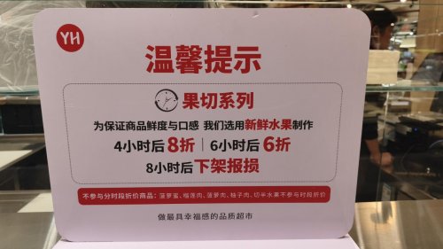 门店严格执行商品溯源管理,查验追溯凭证、检测报告与检疫证明,对新鲜果切严格执行“468原则”——切好后超过4小时八折、6小时六折、8小时下架。叶菜、肉禽、水果、水产等部分商品也会根据情况进行日清折价,拒绝隔夜销售,全力守护消费者“舌尖上的安全”。
