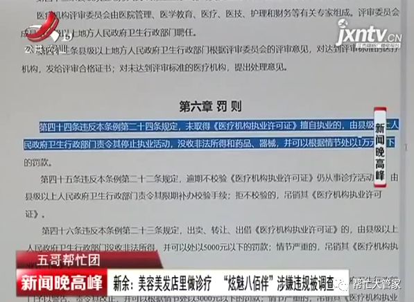 新余市民谢女士:对于进入身体里的项目,它是不允许的,一个是环境不达标,是属于一个有菌环境,二是医生有一个非常严格的要求,没有医师证,和操作证的这一种,是不允许做的。