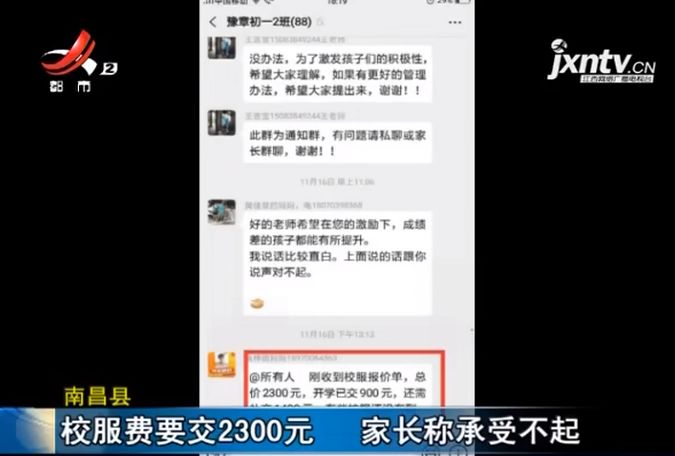 近日,南昌县的舒先生反映,孩子学校要求家长交钱统一买校服。这事本无可厚非,但校服费实在太高,家长有点难接受。