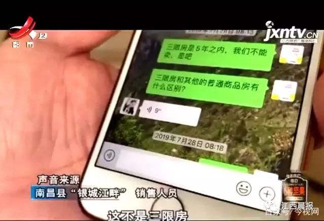业主给记者出示的和销售人员在买房时的聊天记录显示, 售楼部在卖房时还说这里不是限价房。“这不是三限房,我这是正常的,没有限制。三限房是限购,我们这不限购。不限!”