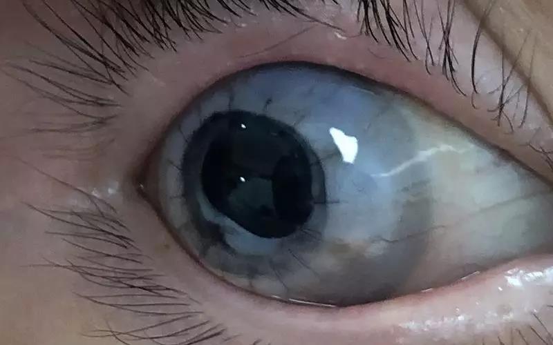 这是一例角膜移植术后的眼睛,