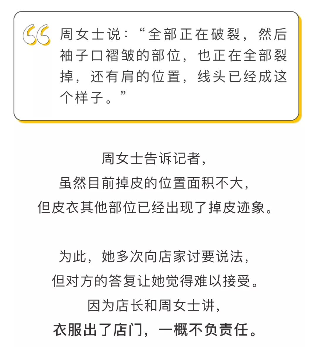 品牌店1000多元买的皮衣还没开始穿就掉皮???