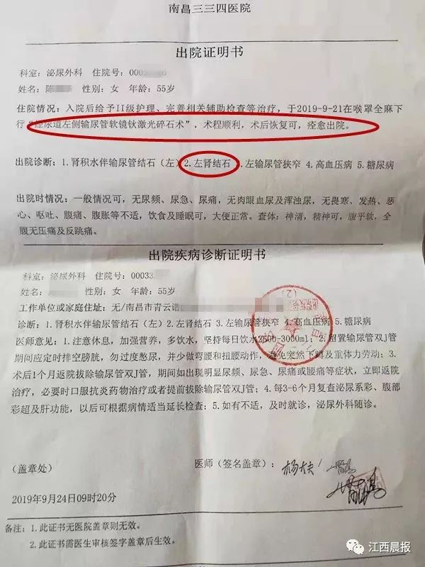 近日,南昌市民张先生向记者反映,今年9月,他的母亲因腰疼不止,在南昌三三四医院查出患有肾结石,并在该院进行了输尿管软镜激光碎石手术。