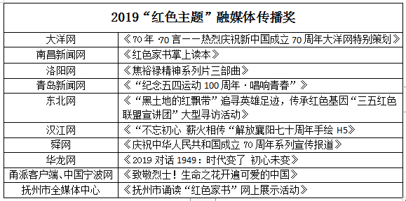 南昌新闻网讯 12月5日上午,“传承红色基因 打造红色产品”——2019全国融媒体新技术新应用新产品报告会召开。据悉,经过中国城市新闻网盟成员专家评委团层层筛选、认真评审,来自20家新闻单位的作品分别荣获2019“红色主题”融媒体传播奖、2019“红色主题”融媒体传播创新奖。其中,大洋网《70年·70言——热烈庆祝新中国成立70周年大洋网特别策划》,南昌新闻网《红色家书掌上读本》等10家单位的作品荣获2019“红色主题”融媒体传播奖。华龙网《来听!红岩精神·永放光芒》,湘潭在线《今天,深切缅怀伟大领袖毛主席!》等10家单位作品荣获2019“红色主题”融媒体传播创新奖。(全媒体首席记者 刘文君)