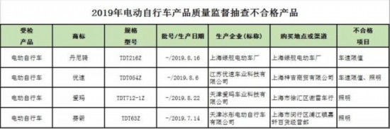 另外,本次抽检的三批次样品照明不合格,分别来自优速、爱玛和赛箭。其中有一批次前灯不合格,2批次后灯不合格,均为亮度值达不到标准要求。