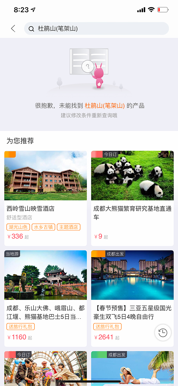 值得注意的是,澎湃新闻(www.thepaper.cn)搜索各在线旅游平台(OTA)发现,驴妈妈平台搜索显示未找到杜鹃山相关产品。此外,除了携程网在杜鹃山景点介绍页面发布了“杜鹃山景区索道停运通知”之外,其他OTA上均未出现相关提示,而飞猪、去哪儿网等APP依然能购买杜鹃山往返索道票。