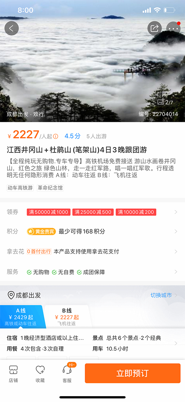 此外,澎湃新闻发现,多个的OTA平台上,包含杜鹃山景点的产品仍可购买,且对行程详情中的杜鹃山一程没有任何关于杜鹃山关停的提示。