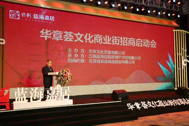 本次招商启动会由城市文化精品社区缔造者——华章文化置业有限公司主办、江西蓝海嘉居房地产开发有限公司承办,媒体、业主、商务合作代表们共聚一堂,共同见证了华章荟文化商业街招商的启动仪式。