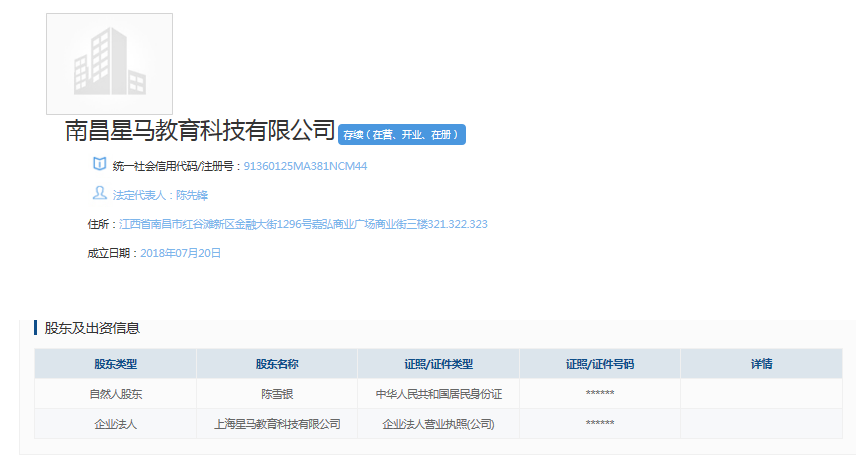 据国家企业信用信息公示系统,南昌星马教育科技有限公司的股东为陈雪银和上海星马教育科技有限公司。