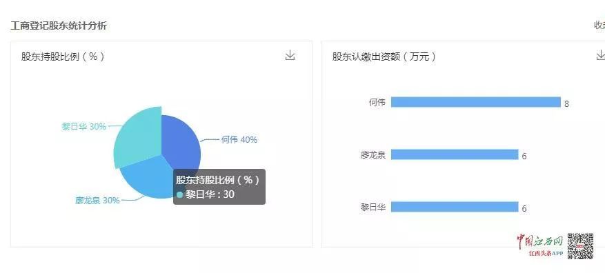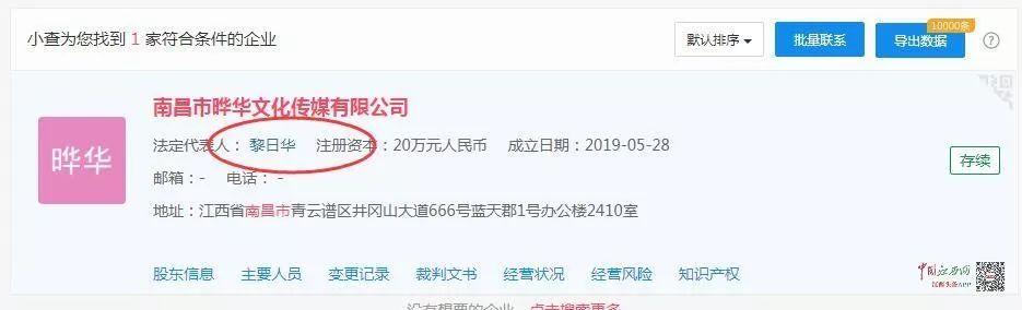 记者通过检索发现,南昌华字文化传媒有限公司法人为何伟,公司三大股东分别为何伟、黎日华、廖龙泉。而南昌市晔华文化传媒有限公司法人为黎日华,是唯一的大股东。