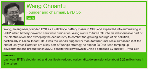 因其带领的比亚迪为全球环保事业做出杰出贡献,王传福荣登环保先锋榜