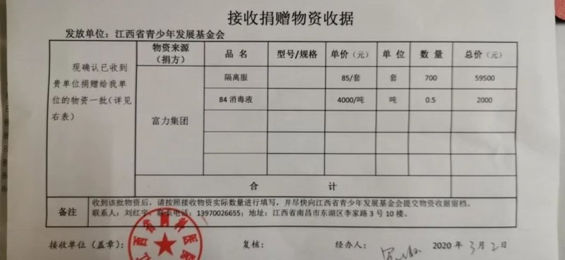 富力集团的支援与帮助,为江西青基会战胜疫情增添了信心和力量。江西青基会承诺,将一定恪尽职守、不辱使命,做好防控捐款各项工作,坚决打赢这场疫情防控阻击战。