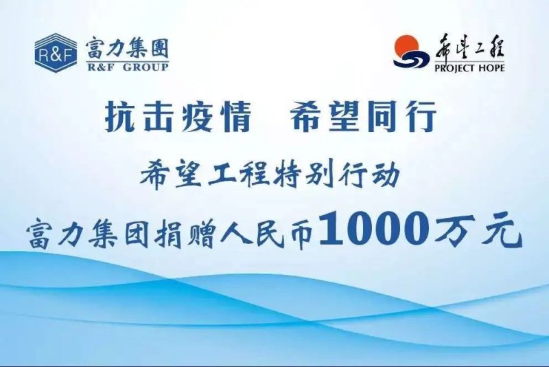 面对新冠肺炎疫情的肆虐,富力集团视抗“疫”为己任,始终全力支持援助奋战在抗“疫”一线的工作者。此前,富力集团宣布向中国青基会及广州慈善会捐款2000万元人民币。其中,富力集团向中国青少年发展基金会捐款1000万元人民币,设立“富力爱心基金”。