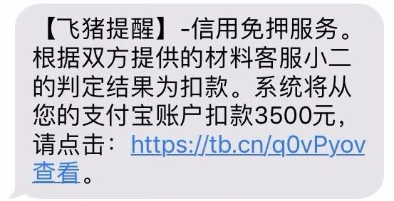 3月6日,张小姐忽然收到了一条“飞猪提醒”的扣款短信。
