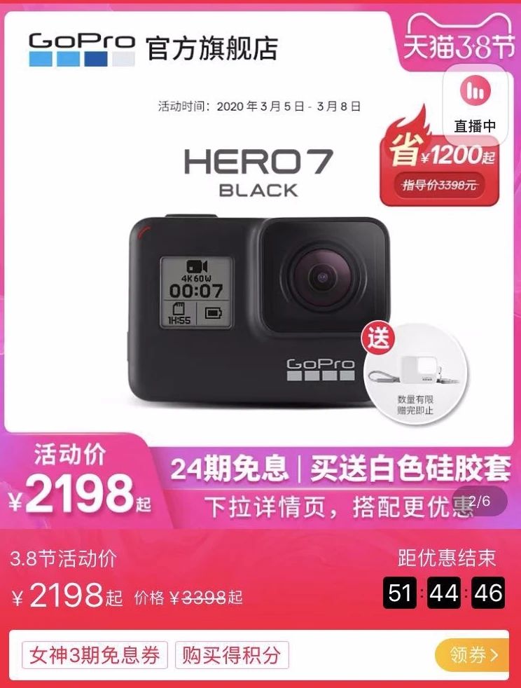 张小姐当时就认为这个赔偿金额不合理,因为据她在gopro官方旗舰店搜索得知,这款相机(全新)能以市场价2198元买到。