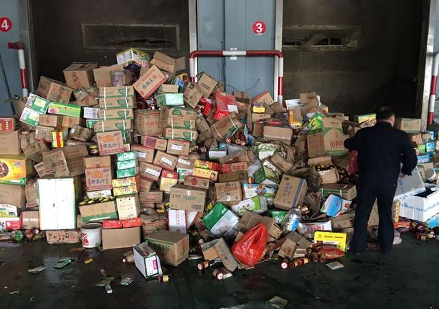 4月3日,在浔阳区生活垃圾二级中转站里,浔阳区市场监督管理局的工作人员正把卡车上的食品搬运下来,这些食品很多包装严整外观看着还不错,但工作人员告诉记者,千万心疼不得,因为这些食品全部过了保质期,要集中进行无害化处理。