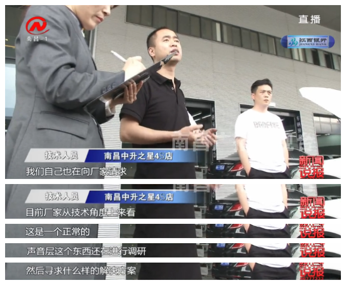 既然厂家表示电流声属于正常工作,那么南昌中升之星4S店提出再次向厂家反映的这个建议,张先生认为就是在拖延时间,随后,记者向南昌中升之星4S店的负责人反映此情况,在等待半小时后,对方给出了解决方案。