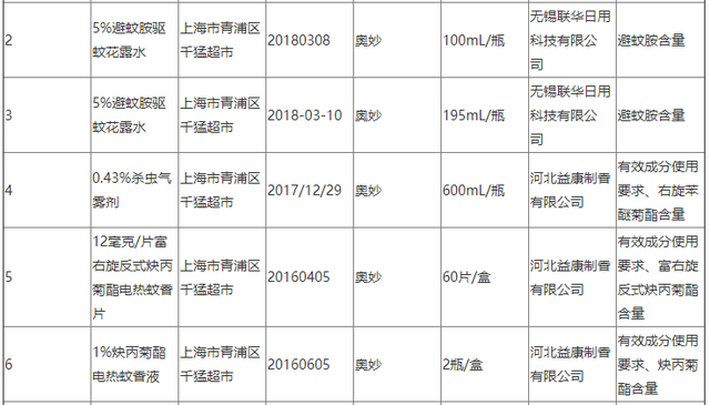 此外,2018年9月5日,上海市工商行政管理局发布家用卫生杀虫用品质量抽检情况(2018年)表示,5批次的奥妙驱蚊花露水、杀虫剂、蚊香片和蚊香液均不合格。不合格原因是避蚊胺含量不合格和有效成分使用要求不合格,不符合国家用药要求。工商部门责令立即停止销售不合格商品,对库存商品和在售商品进行全面清理。