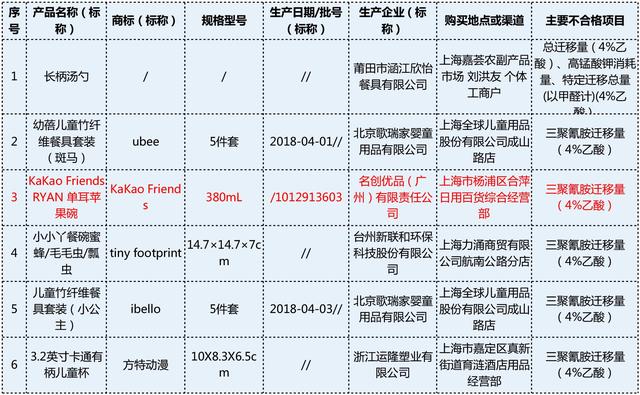 6月18日,上海市市场监督管理局网站公布2019年上海市儿童用餐具(密胺餐具)质量监督抽查结果。