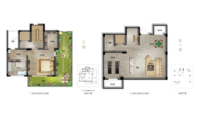约5.7米挑高地下室,360-500平的地下空间(双拼、下叠赠送面积),阔绰的空间尺度下,满足塔尖人士对品质生活的追求。